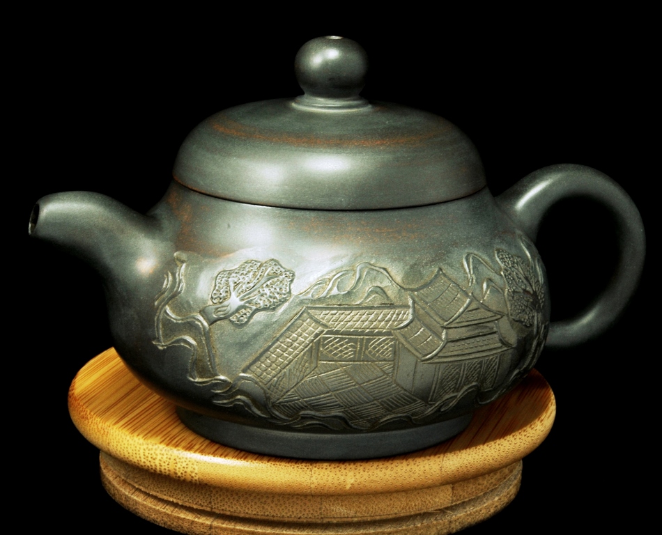 Качественный керамический чайник из полированной глины. Авторский стиль исполнения мастера из Гуанси. На поверхности резной рисунок, с изображением китайской деревни. Качество обжига на высоте. Струя из носика прямая, без брызг. Плотно притертая крышка с отличным водным замком. Чайник наилучшим образом подойдет под шу пуэр.