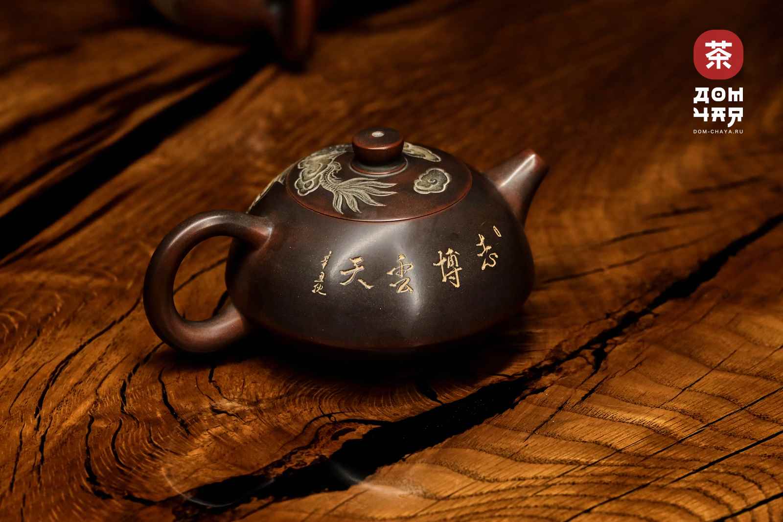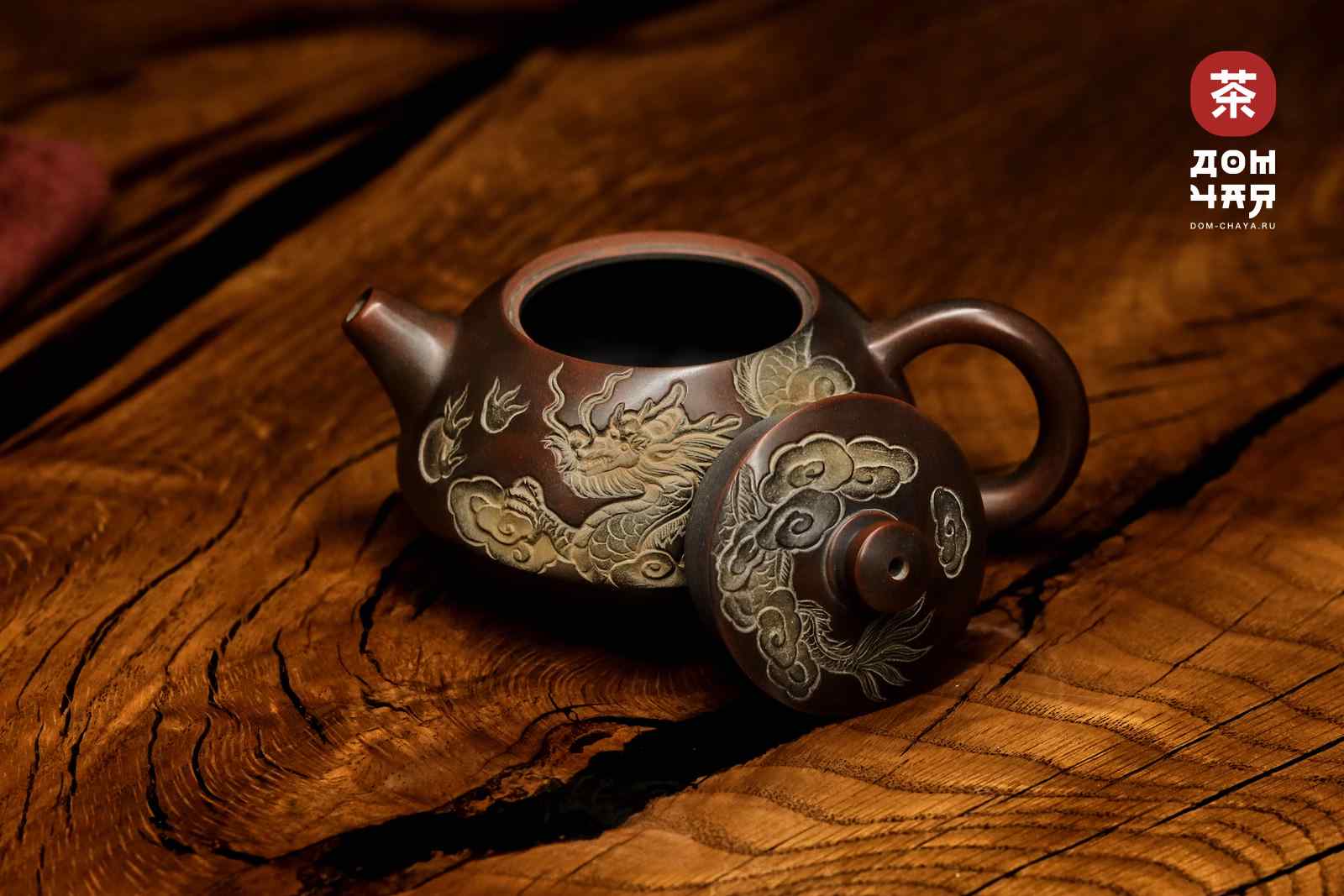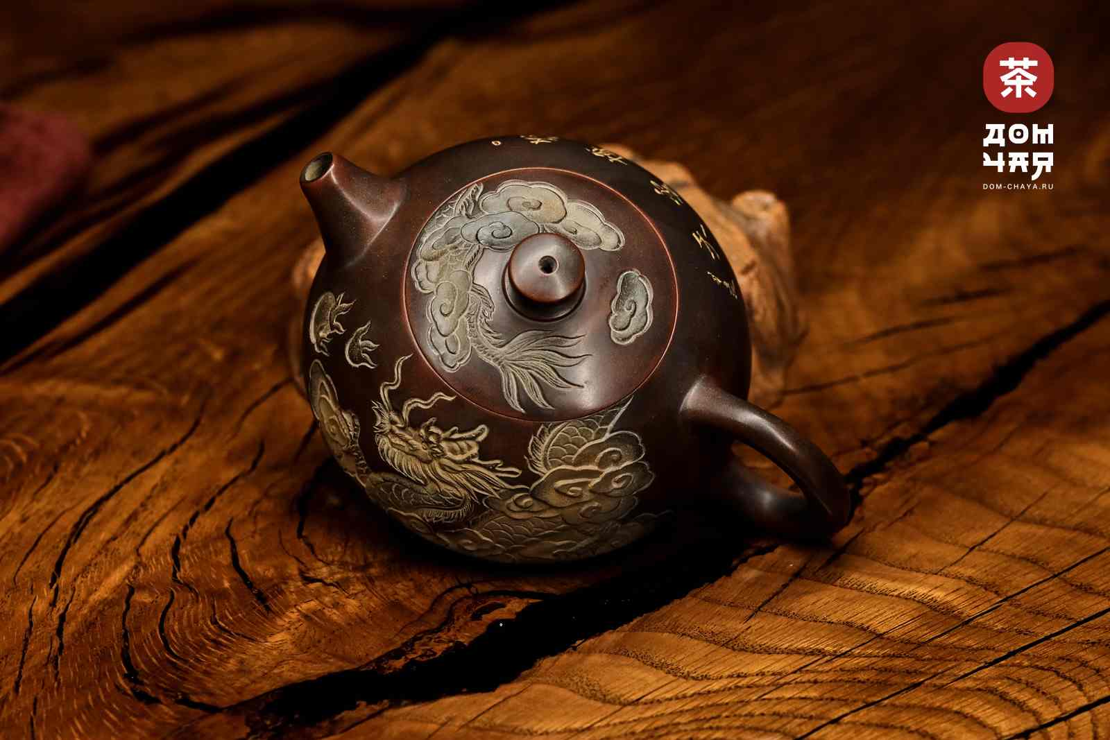 Красивейший чайник от заслуженного мастера Хан Ли, имеющего множество наград на выставках искусств в Гуанси. Чайник представавляет коллекционную ценность, изготовлен полностью вручную, с градиентом черно-красного цвета. Украшен великолепной ручной резьбой с инкрустацией белой глиной, изображающей традиционного китайского дракона. Ловко сидит в руке, изящная ручка. Хорошо притёртая крышка, водный замок работает отлично. Сильный ровный и быстрый слив. По форме хорошо подходит для красных, тёмных улунов, шу пуэра. и хэйча.