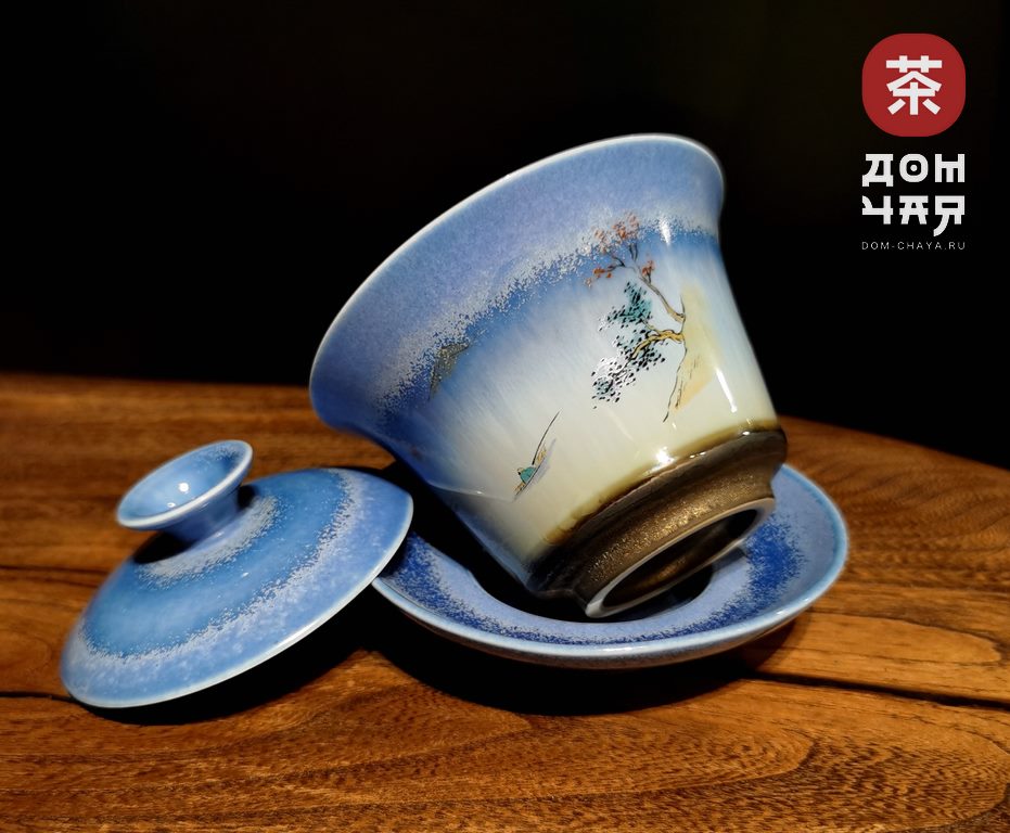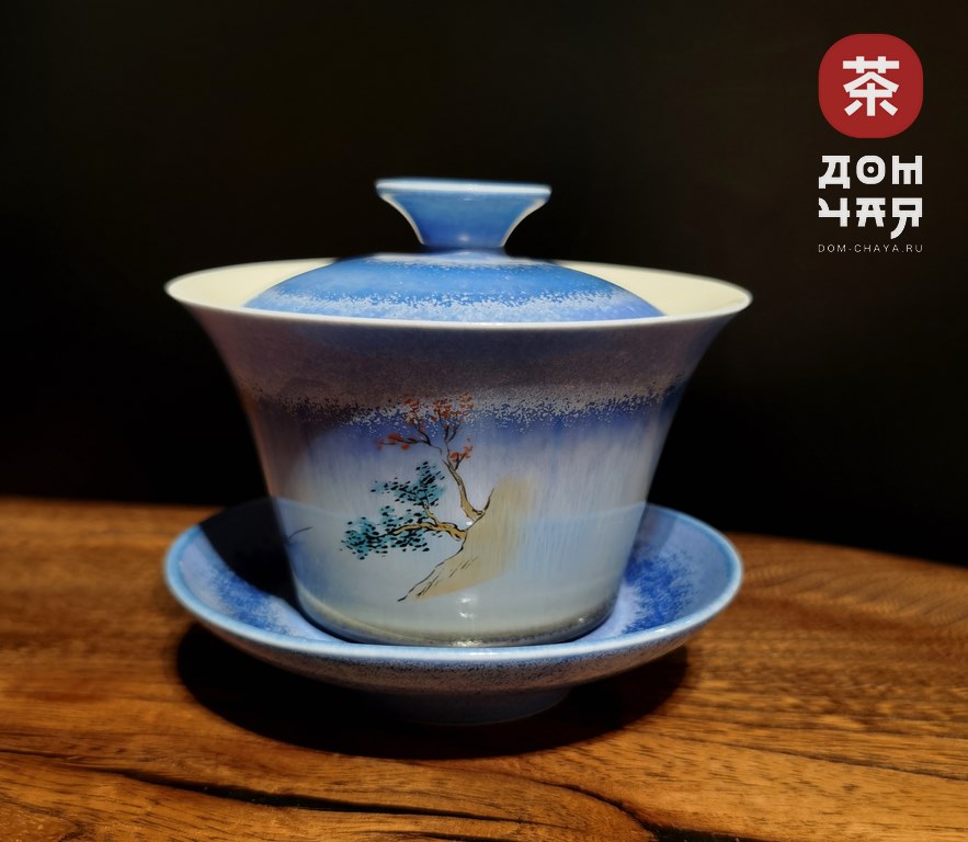 Гайвань фарфор, Синяя «Пейзаж», 140мл.