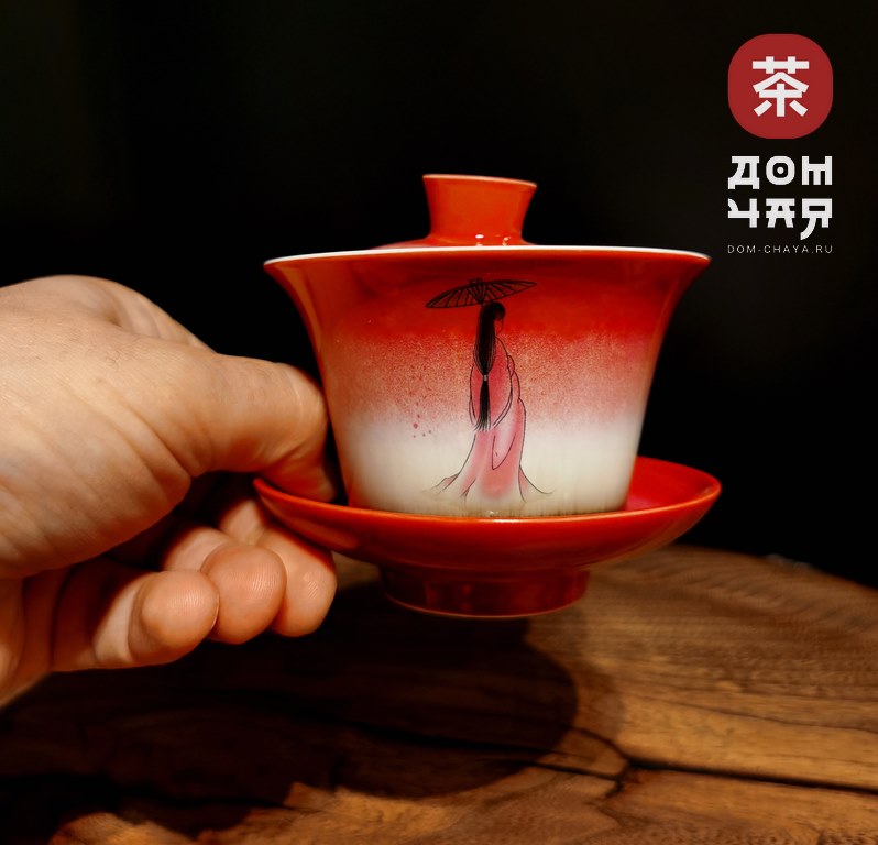 Гайвань красная, фарфор «Наложница», 140мл.