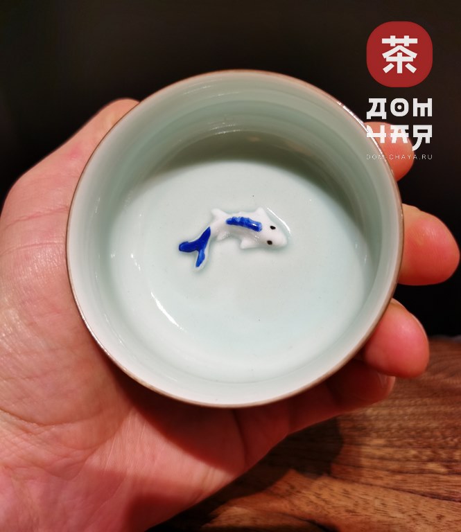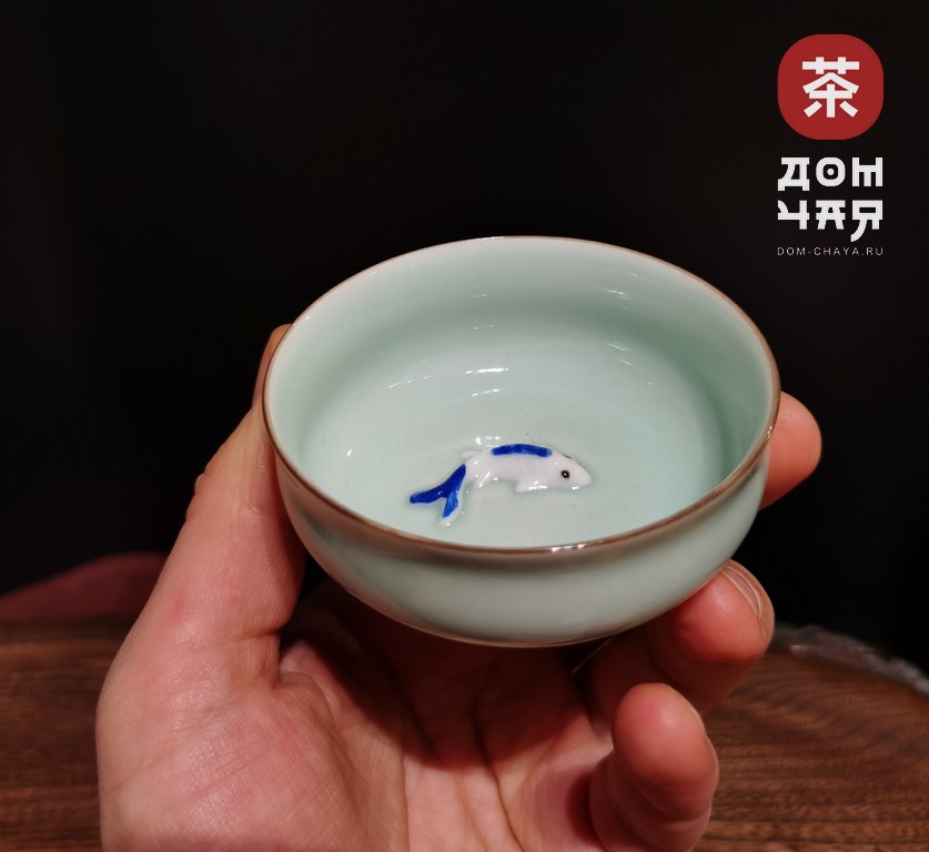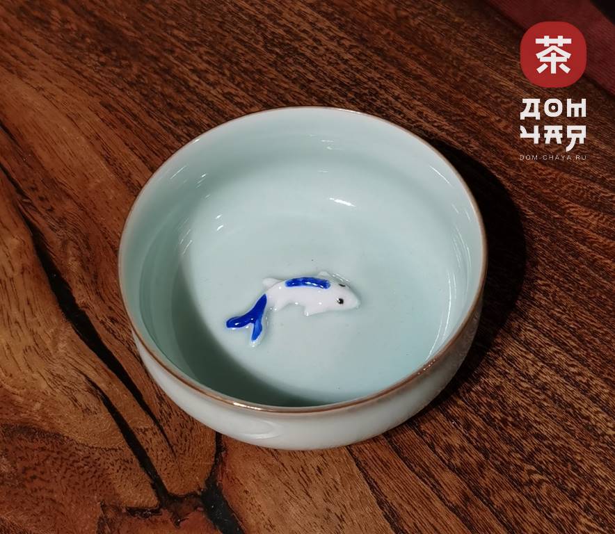 Пиала, Фарфор Селадон «Голубые карпы» 80 мл