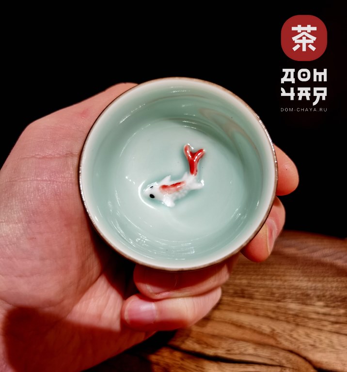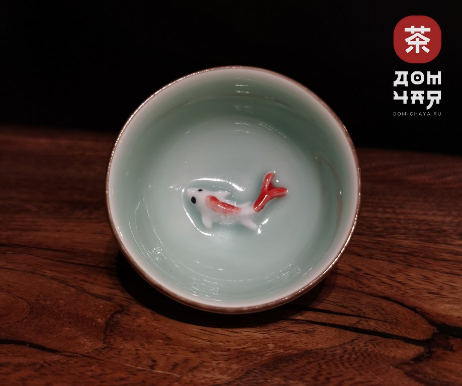 Пиала, Фарфор Селадон «Красные карпы»