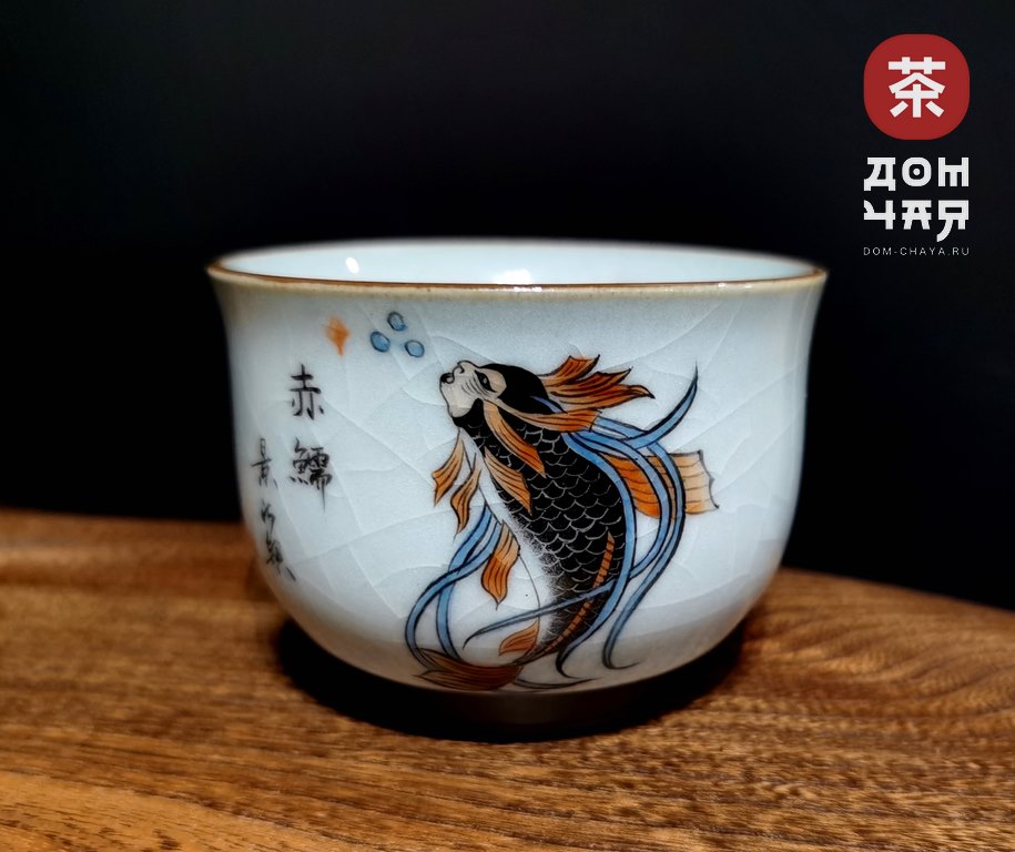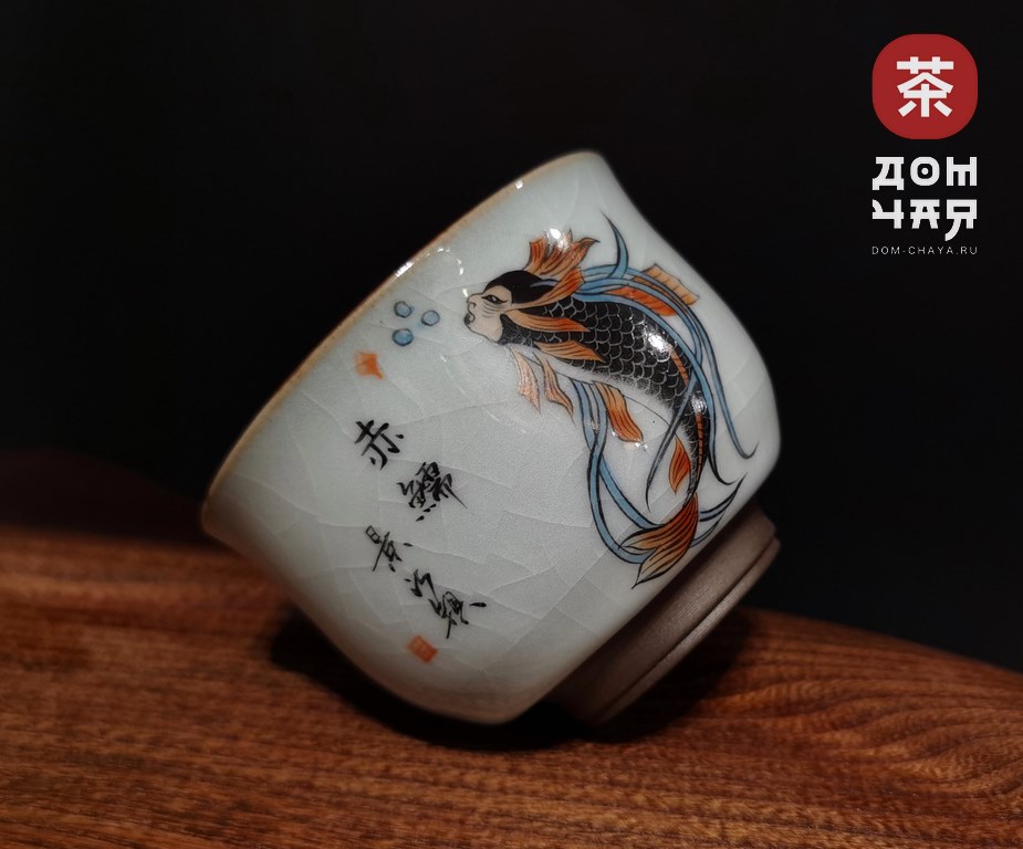 Пиала "Золотая рыбка", Цзиньдэчжэньский фарфор, ручная роспись,100 мл.