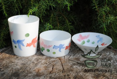 Пиалы из тонкостенного Фарфора ручной росписи f09, 150мл.