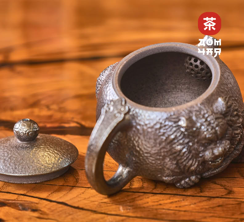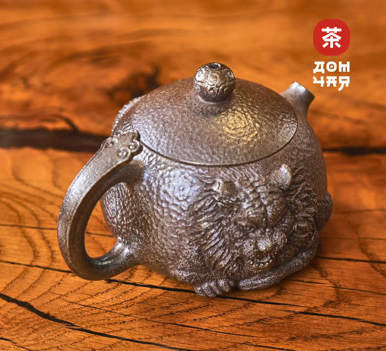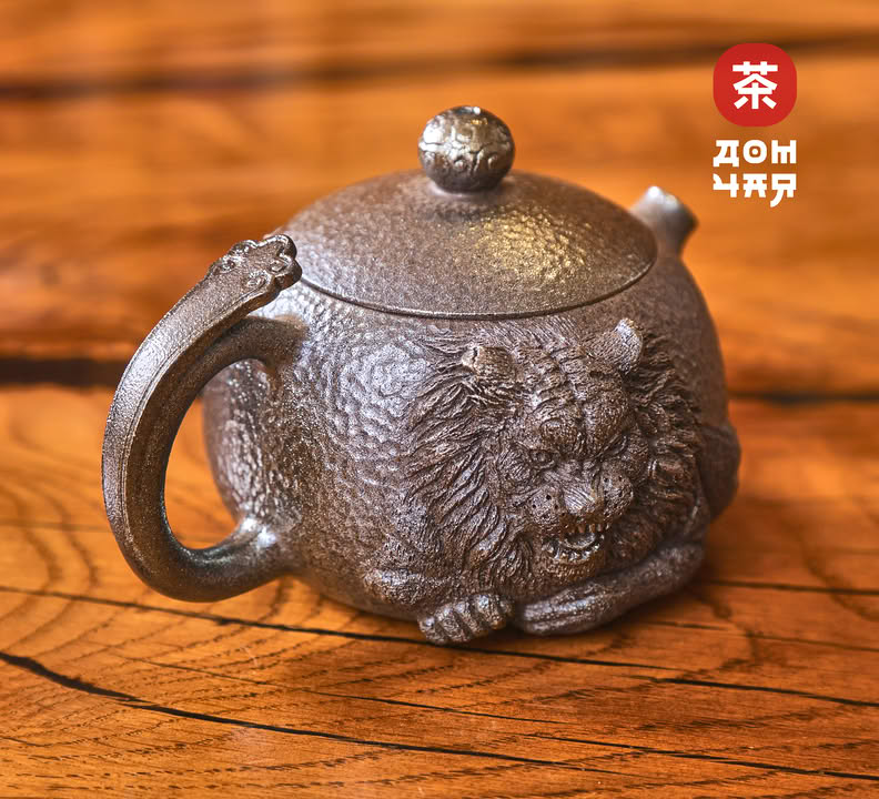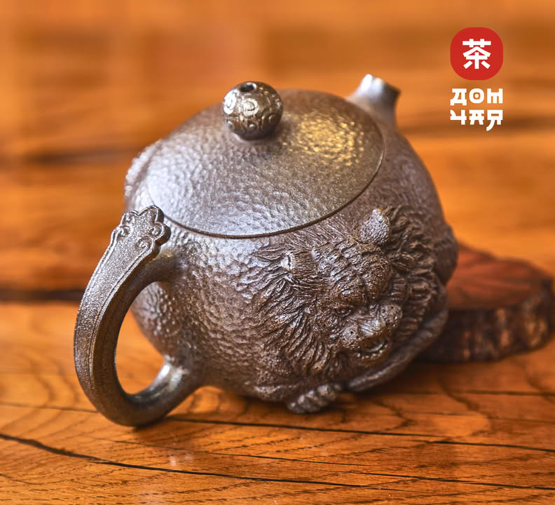 Чайник 185мл "Король Лев", цзяньшуйская керамика, 3D резьба, дровяной обжиг