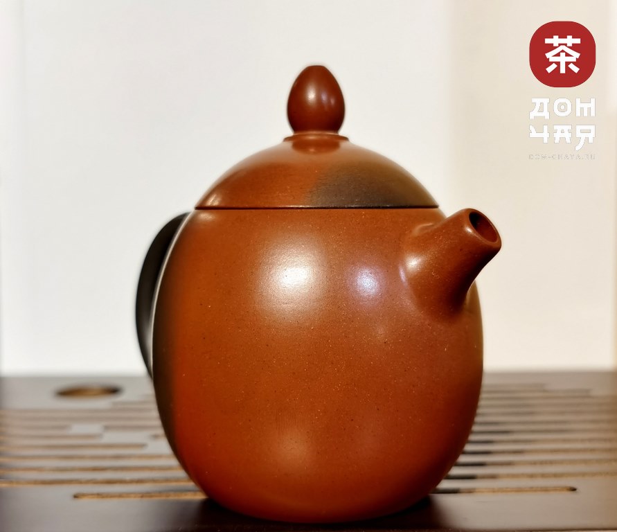 Авторский стиль исполнения мастера из Гуанси, полностью ручная работа, Форма чайника - Яйцо дракона, выполнен из глины "Нисин-тао". Идеально притёртая крышка - сидит как влитая, быстрый и ровный слив. Чайник имеет толстые стенки, поэтому отлично подойдет под Пуэры и темные улуны и красные чаи! Чайник прошел дровяной обжиг по нашему заказу у мастера Хан Ли, после чего приобрел такой красивый цвет.